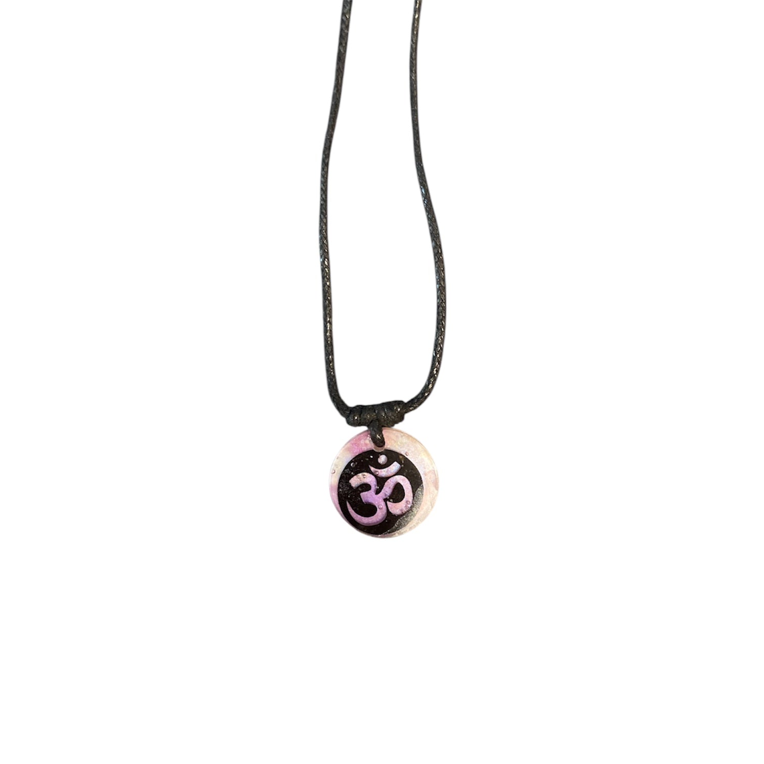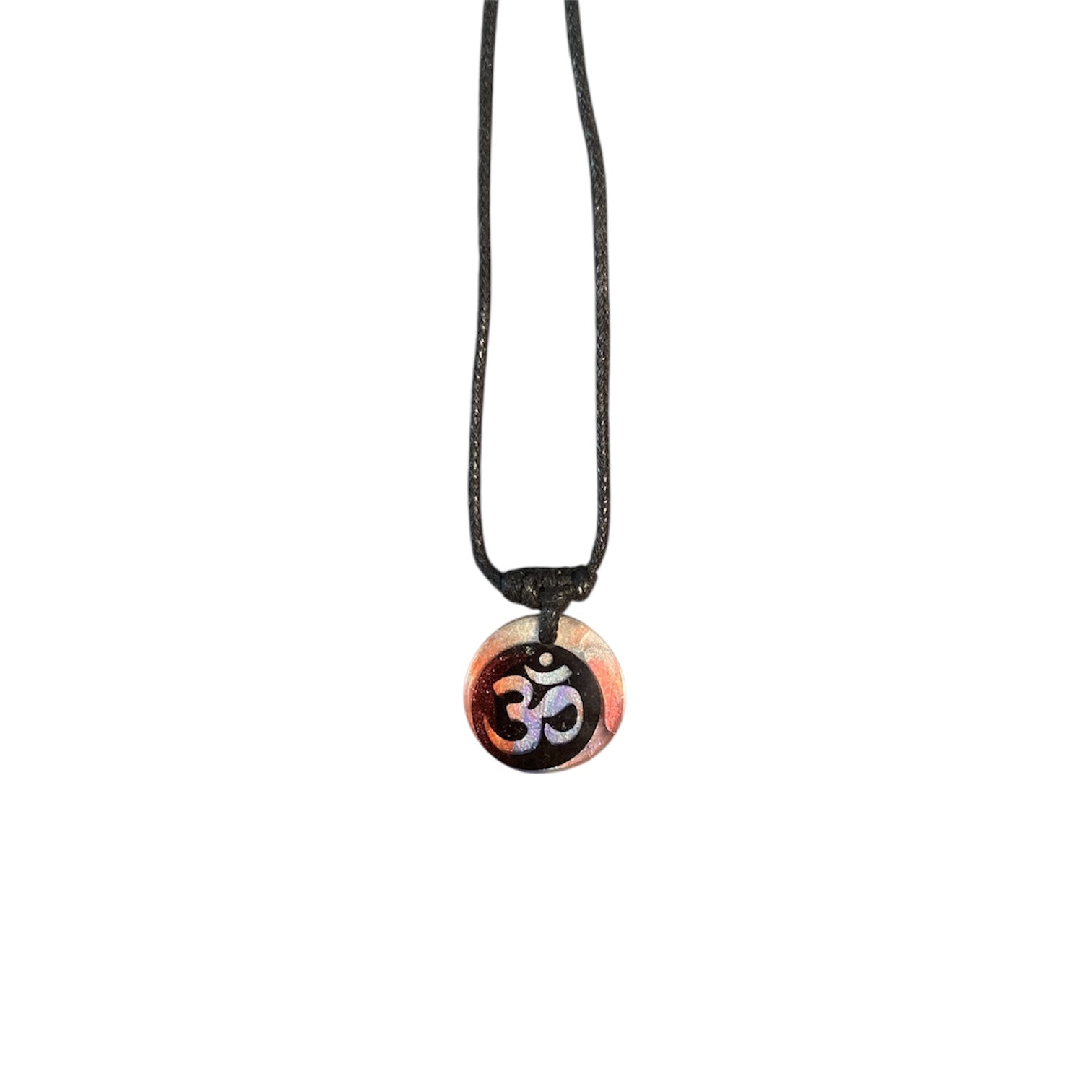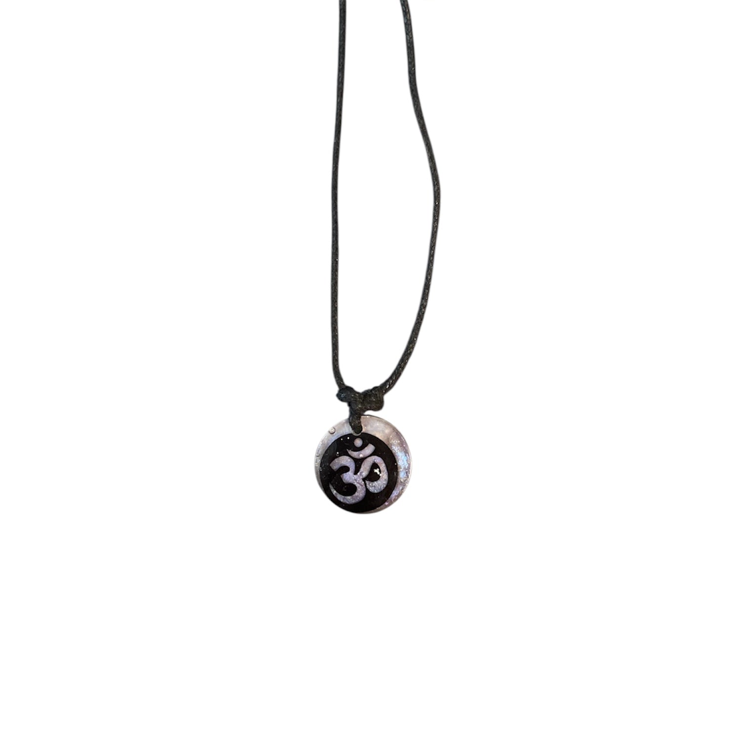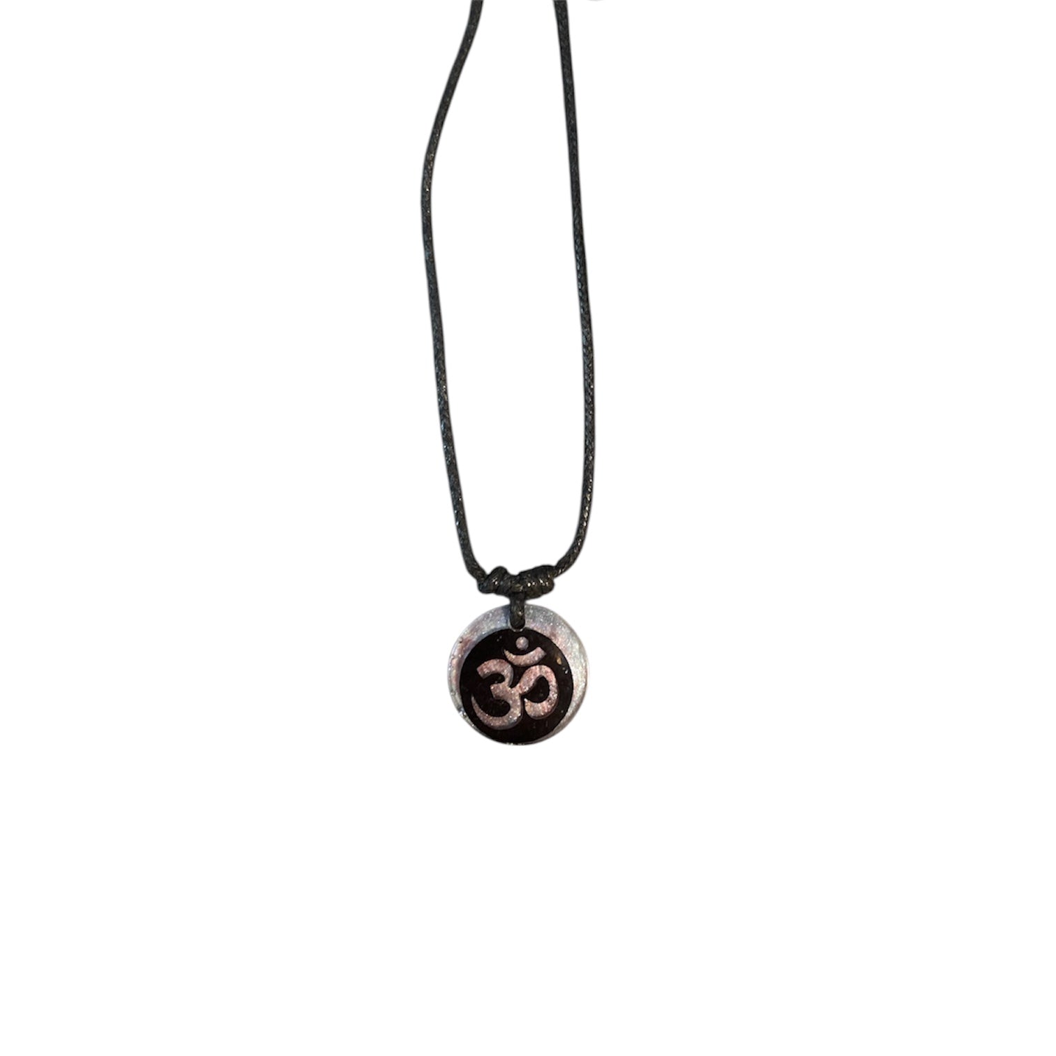 Discover the energy of nature with our necklace featuring the Om symbol and eco-epoxy resin. With its black cord and magnetic clasp, this piece embodies balance and harmony.