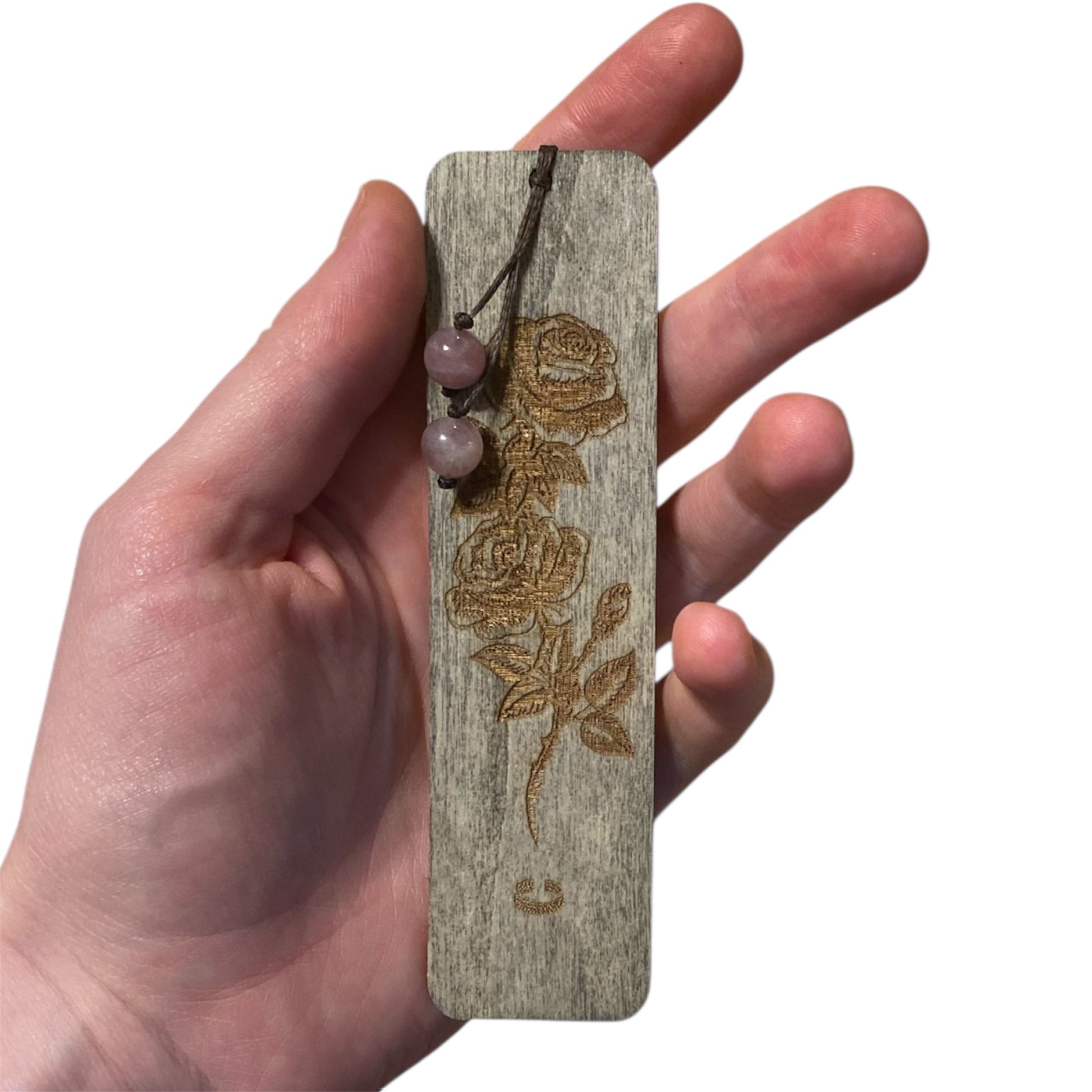 Le motif a ensuite été gravé à l'aide d'une machine, permettant des détails précis et durables. Pour finaliser la création, j'ai ajouté une corde ornée de perles naturelles en pierre fine : deux perles de chaque côté, en quartz rose, apportant une touche douce, élégante et énergétique à l'ensemble.