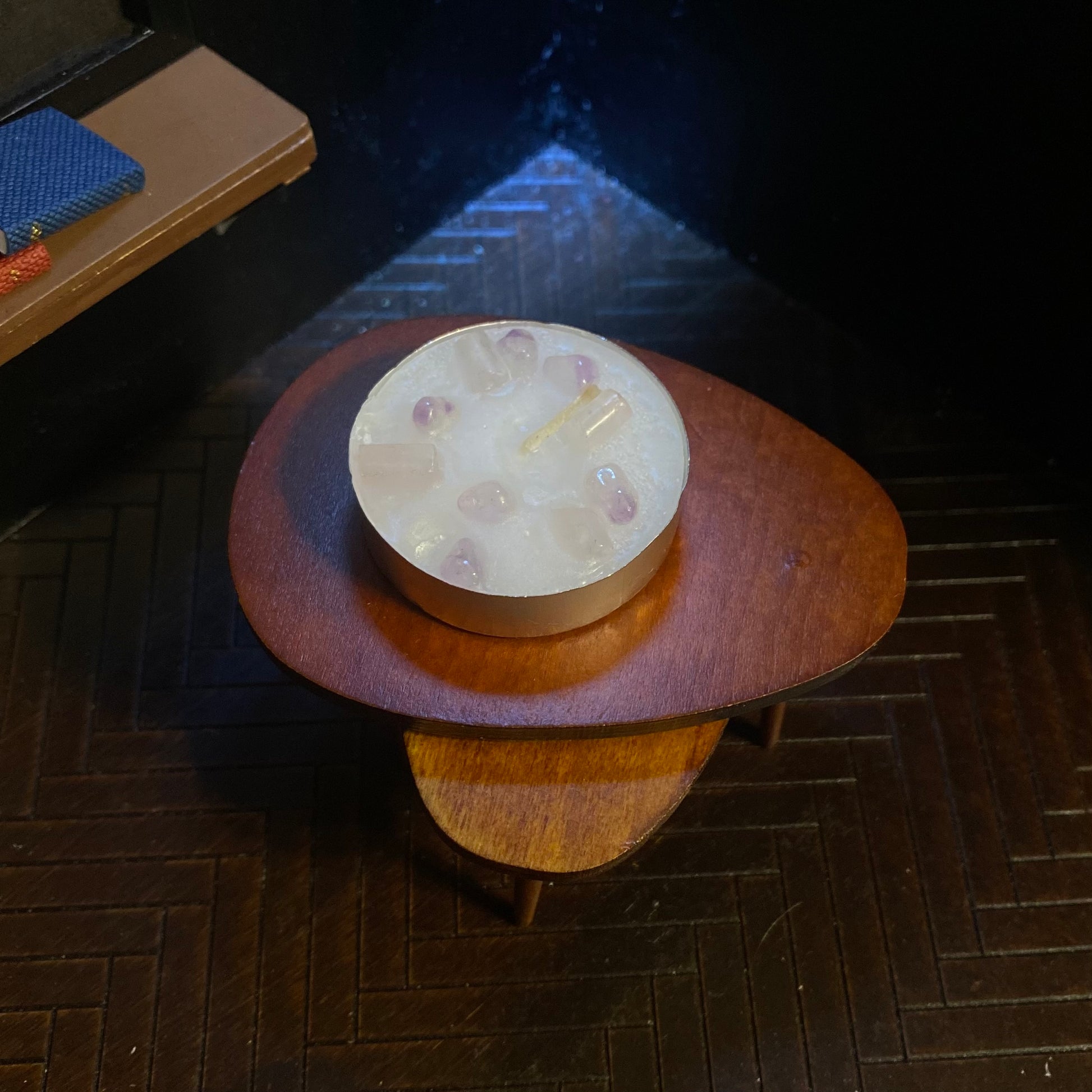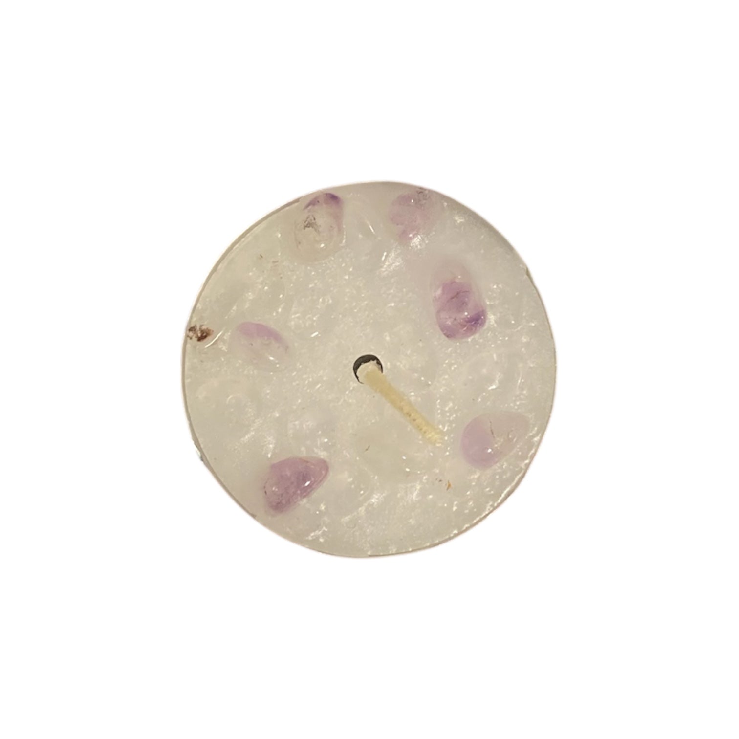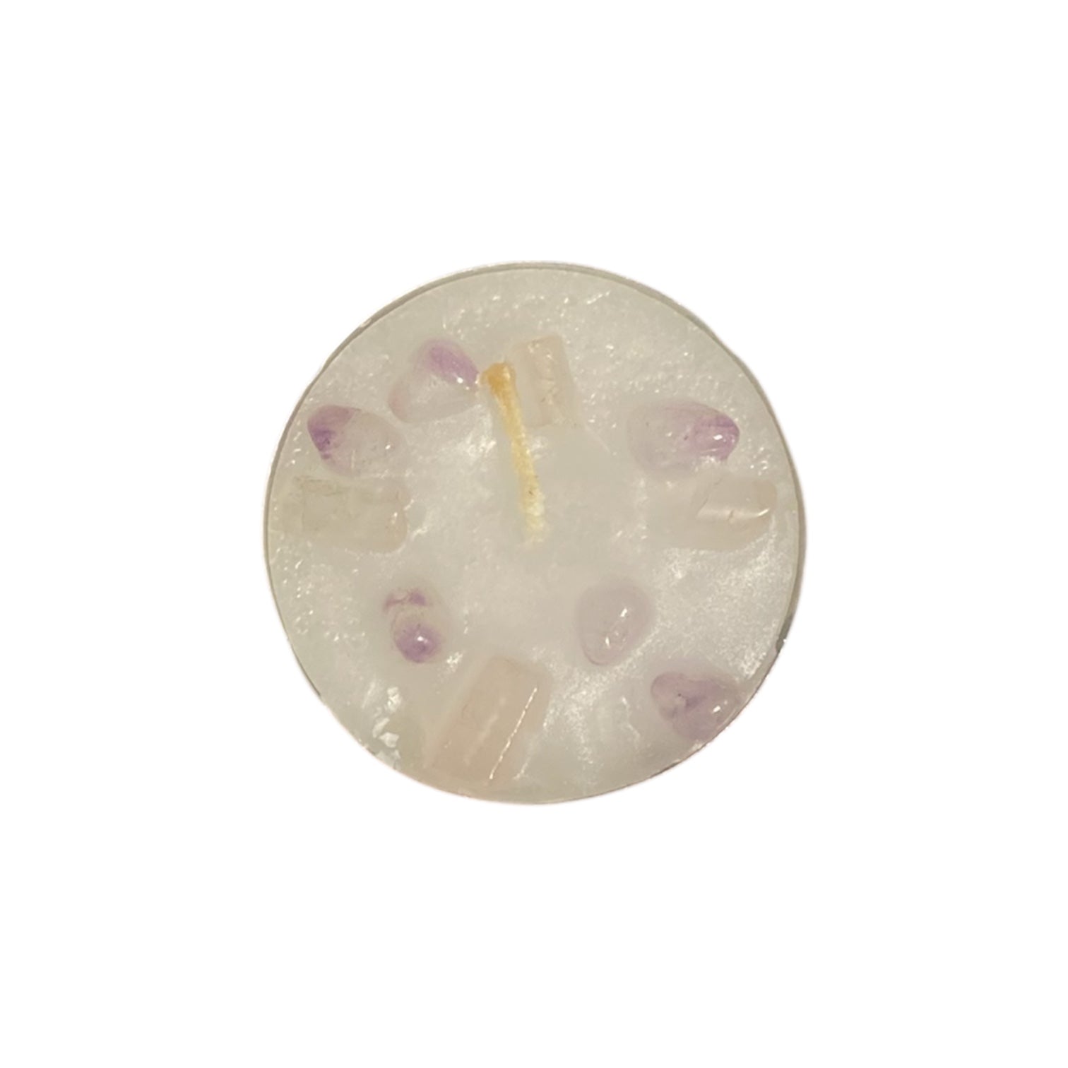 Chandelle sans parfum avec pierres naturelles au choix : Améthyste et Quartz Rose, Améthyste et Quartz Blanc ou Quartz Blanc et Œil de Tigre